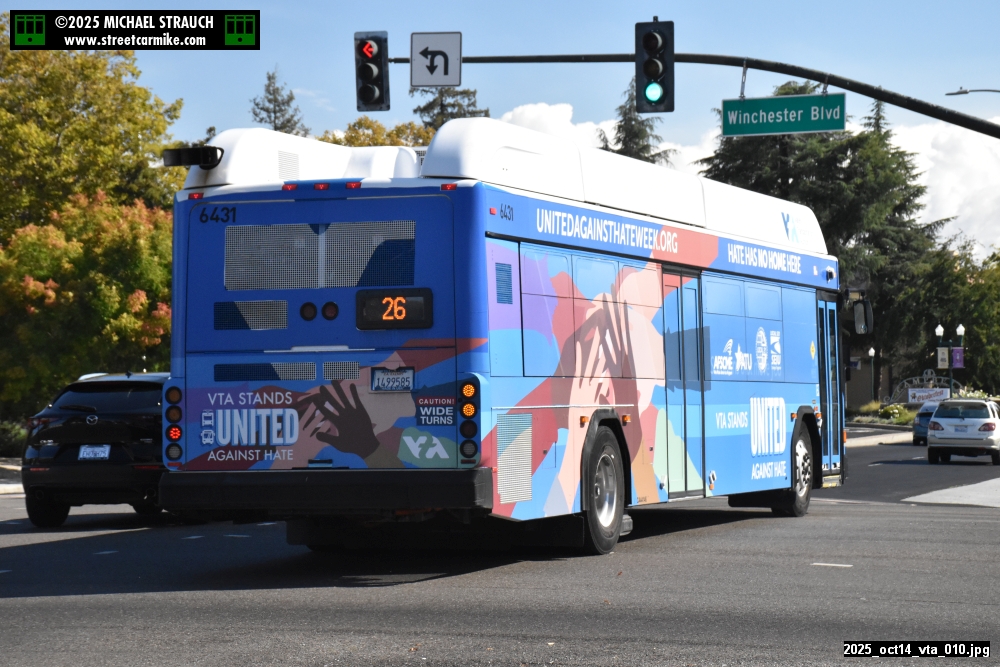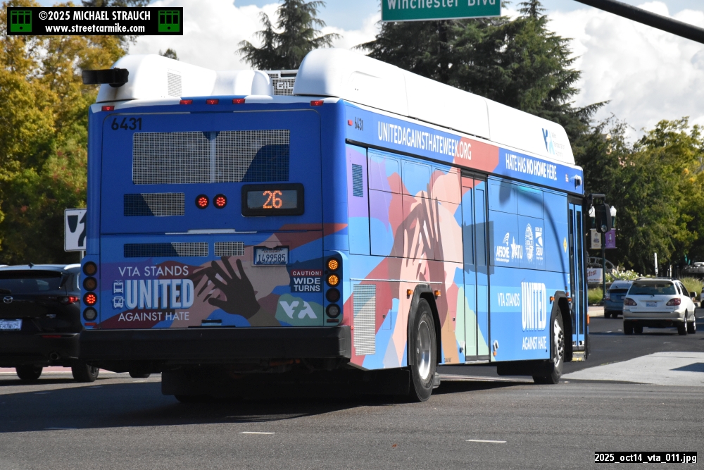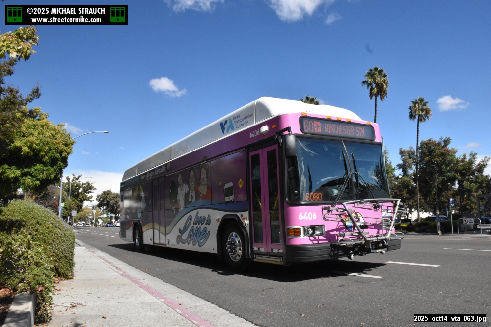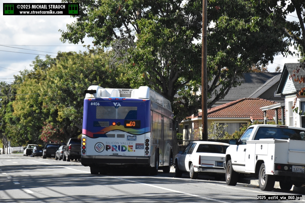 Gillig 6406 (Pride) on the 60 and 6431 (VTA Stands United Against Hate) on the 26. Also got two Capitol Corridor trains