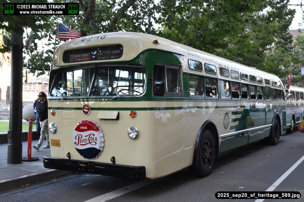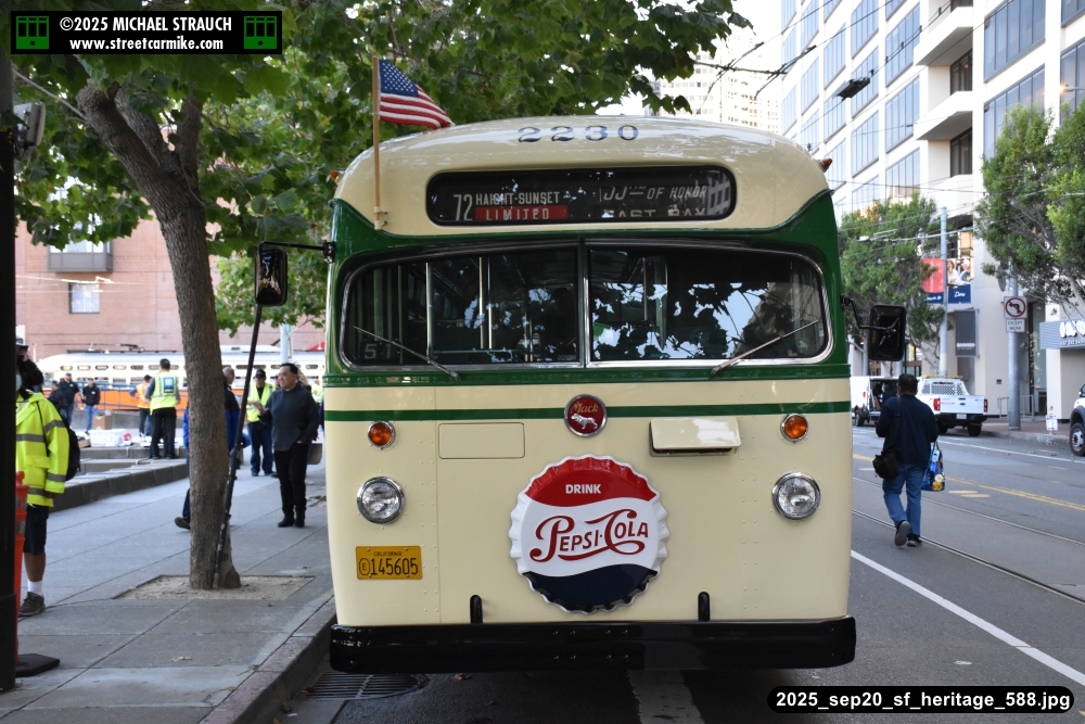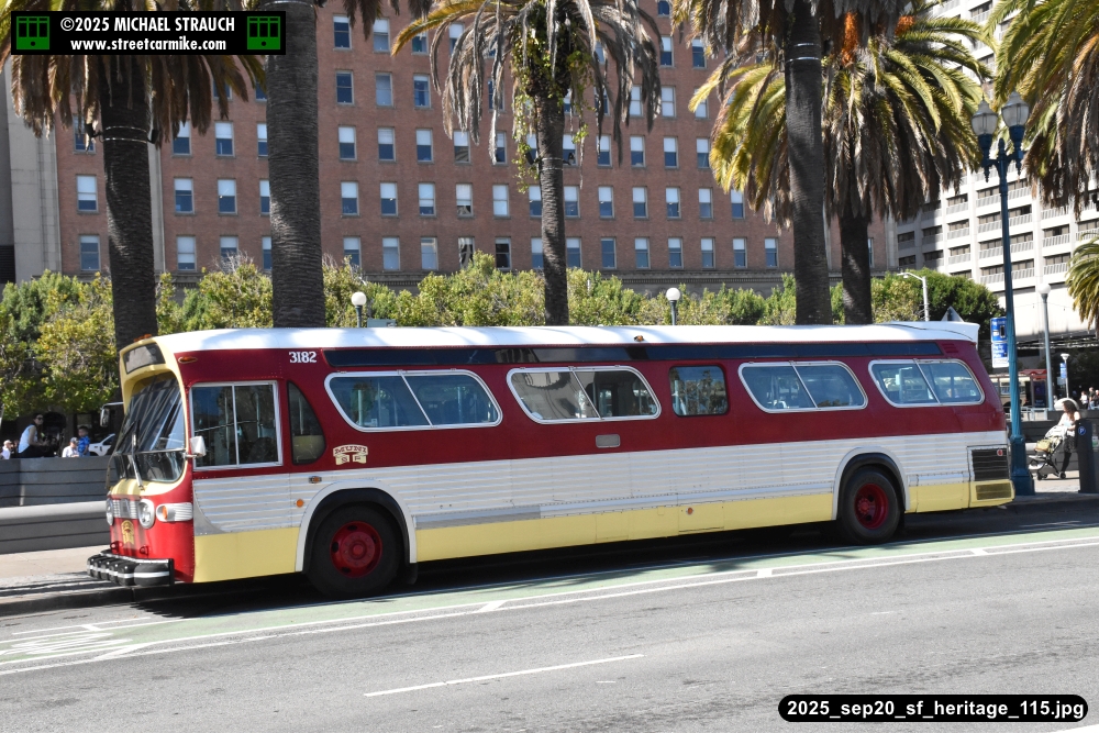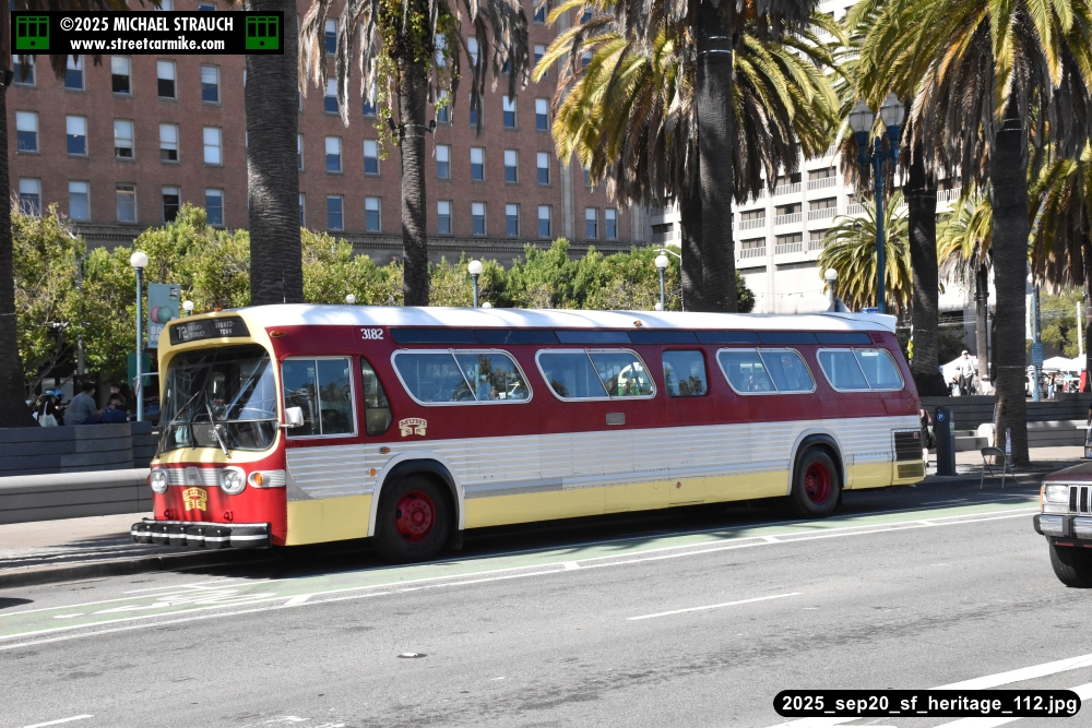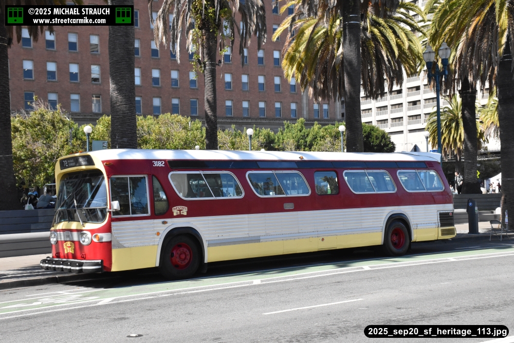 Also seen parked on Embarcadero were privately owned Muni 3182, VTA 9911, and the Pacific Bus Museum's