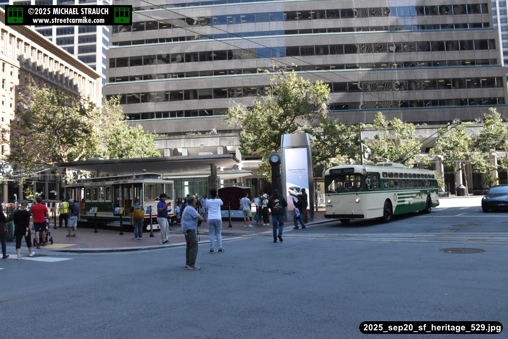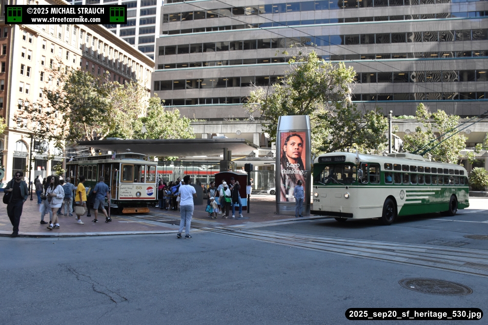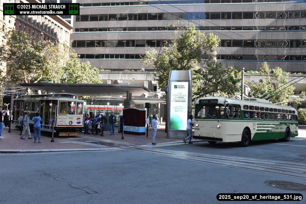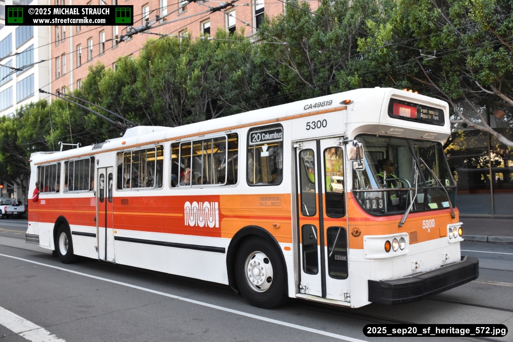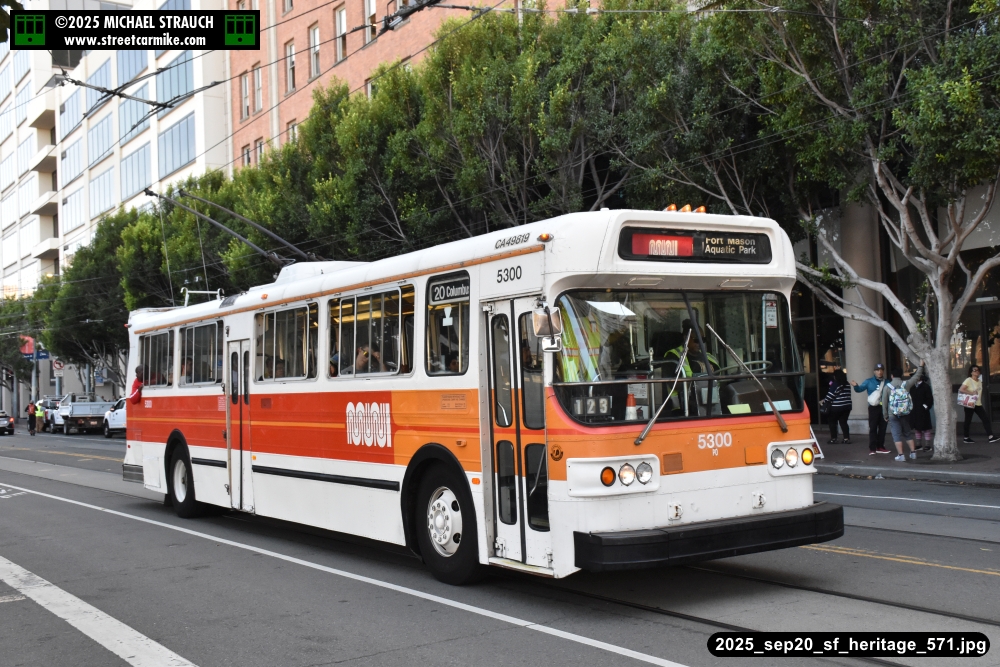 to Pier 39 and back. On the trolley coach side, Marmon 776 and Flyer 5300 were looping out Columbus Ave.