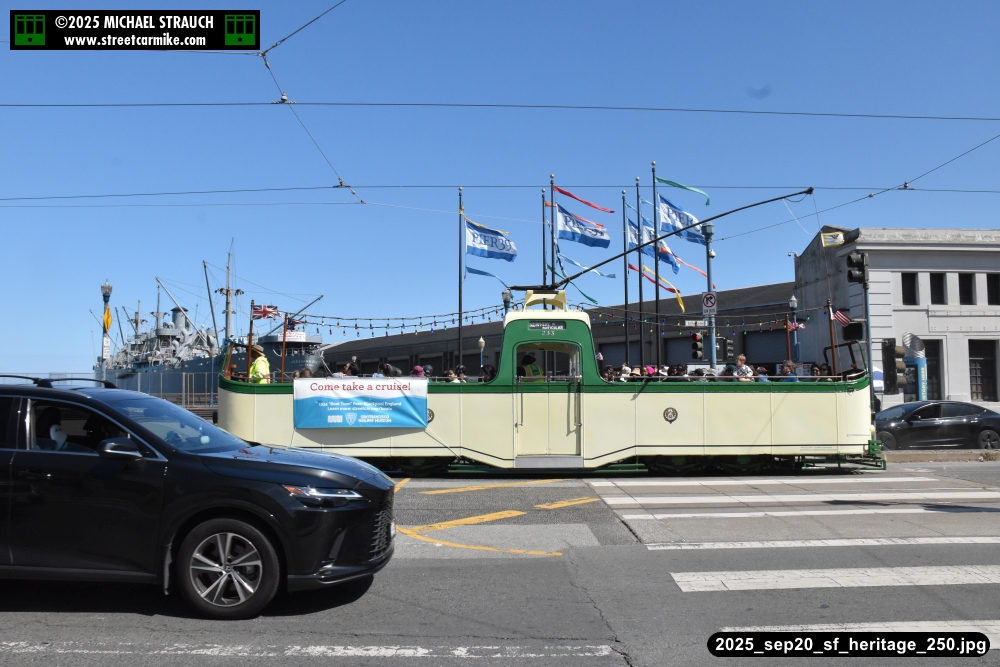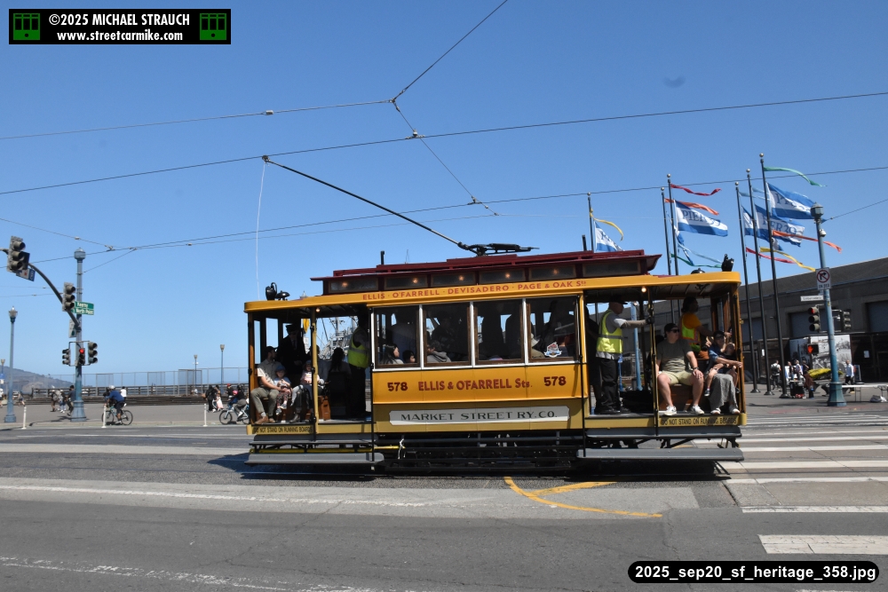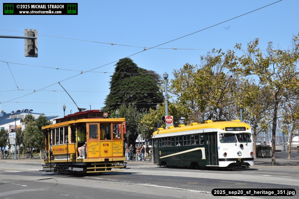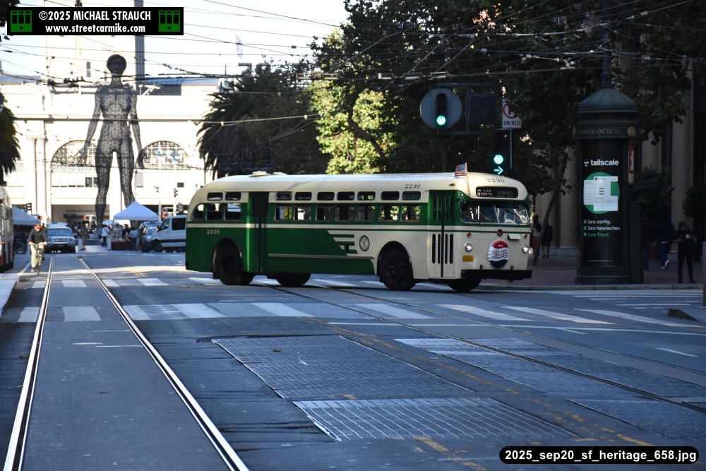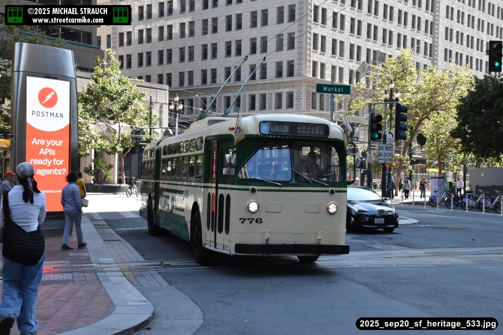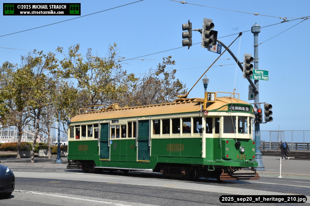 to Pier 39 and back. On the trolley coach side, Marmon 776 and Flyer 5300 were looping out Columbus Ave.