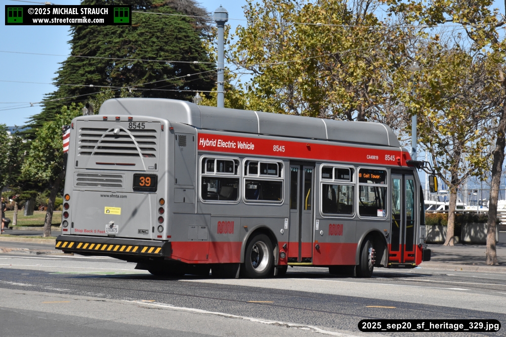 and North Point St. to Van Ness Ave. And there were motor coaches on a loop to Caltrain: White 042, Orion 9010,