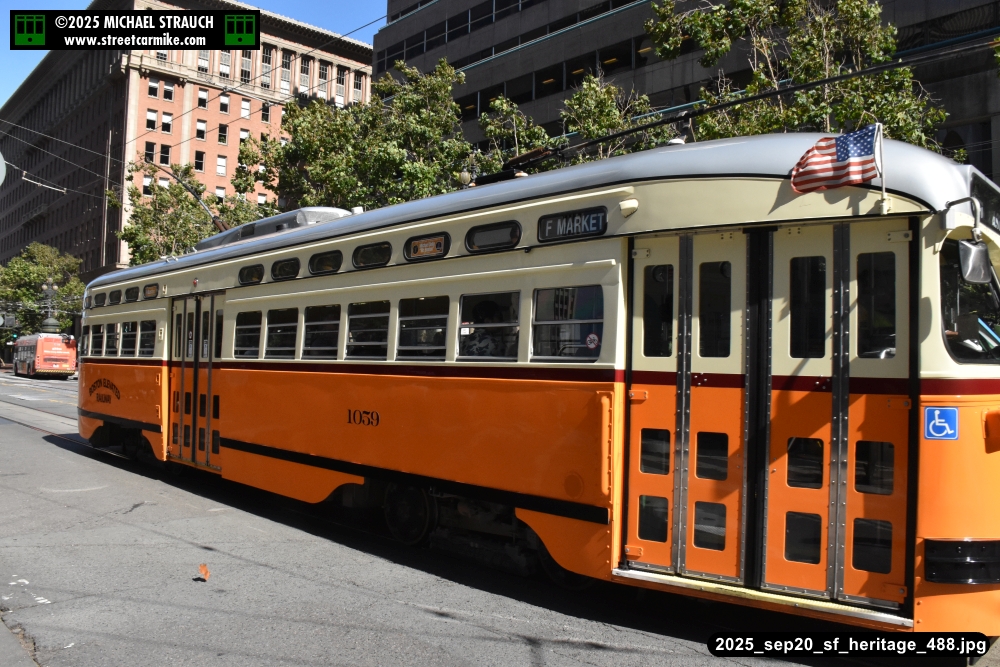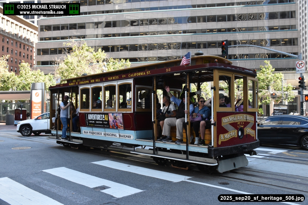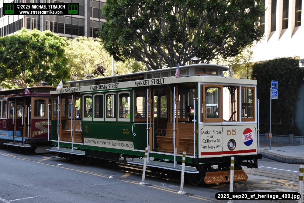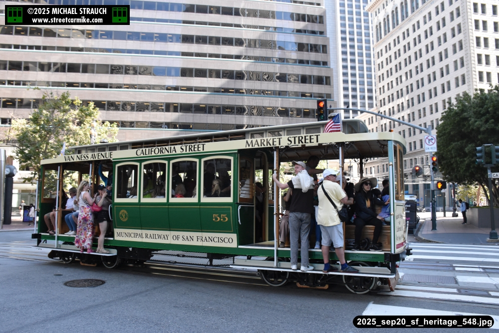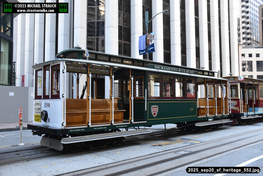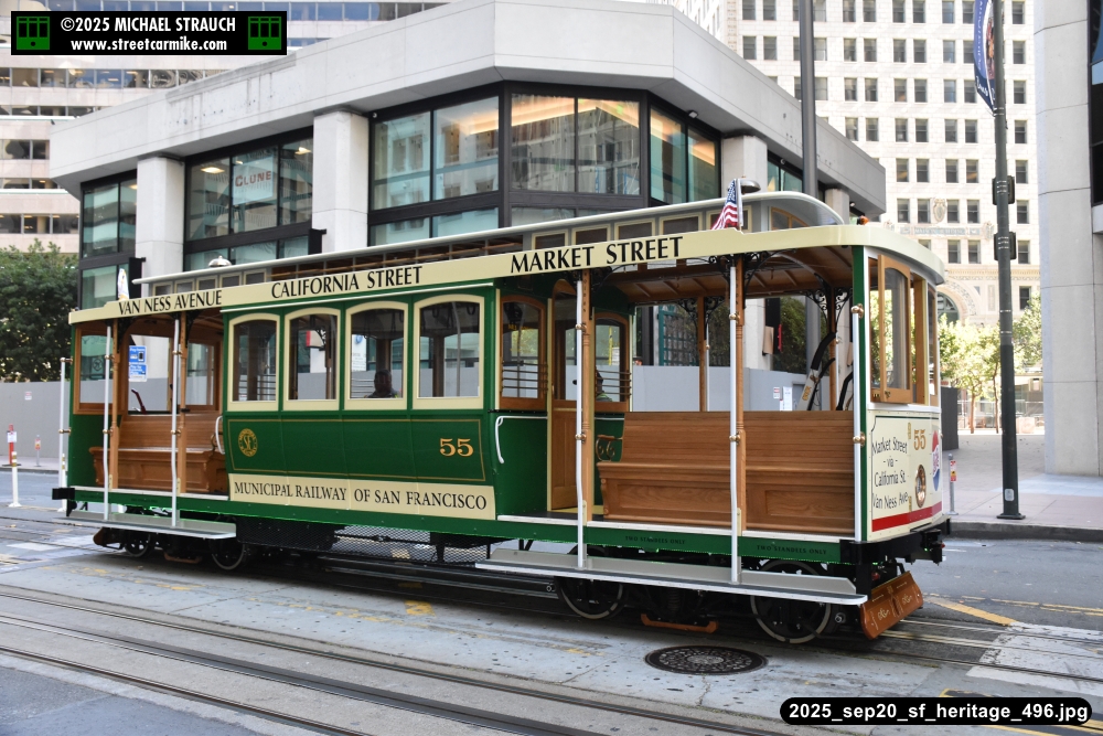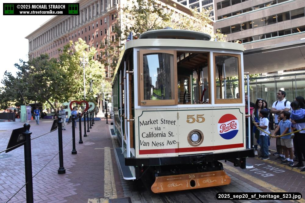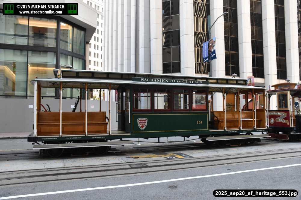 Street, Big 19 and newly restored 55 in Muni 1950s livery were in service.