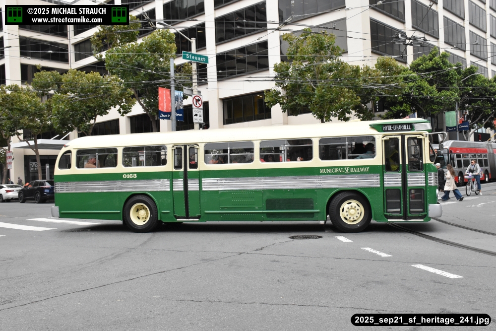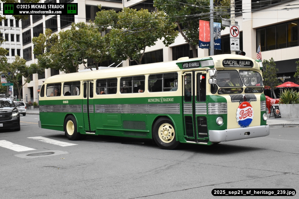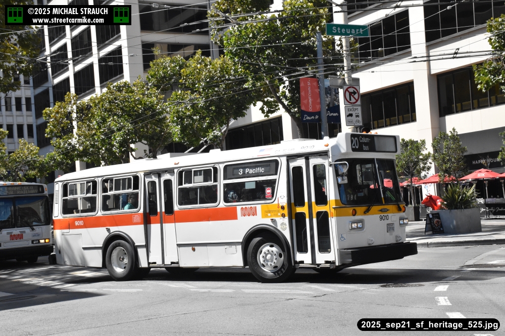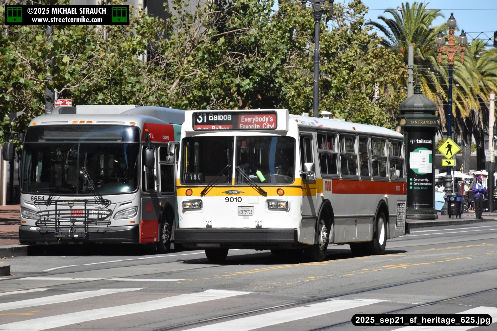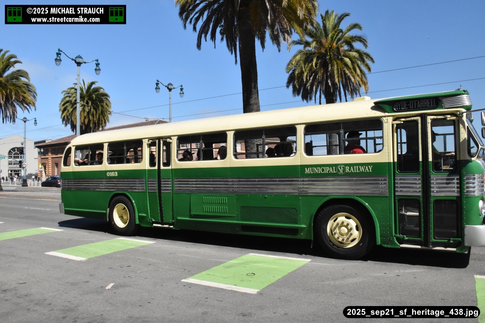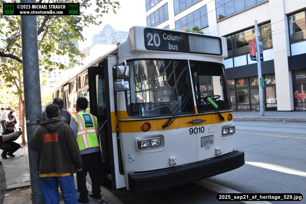 Two rides, on Twin 0163 on the Caltrain route and on Orion 9010 on the Columbus Ave. and North Point