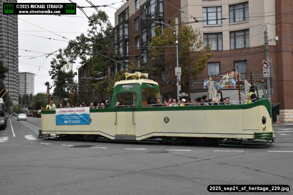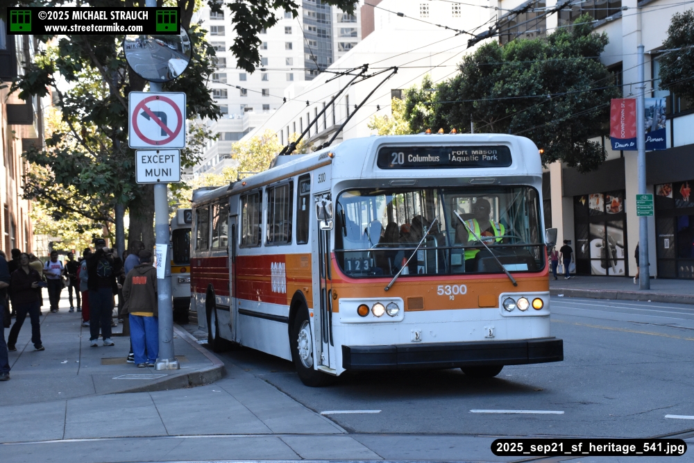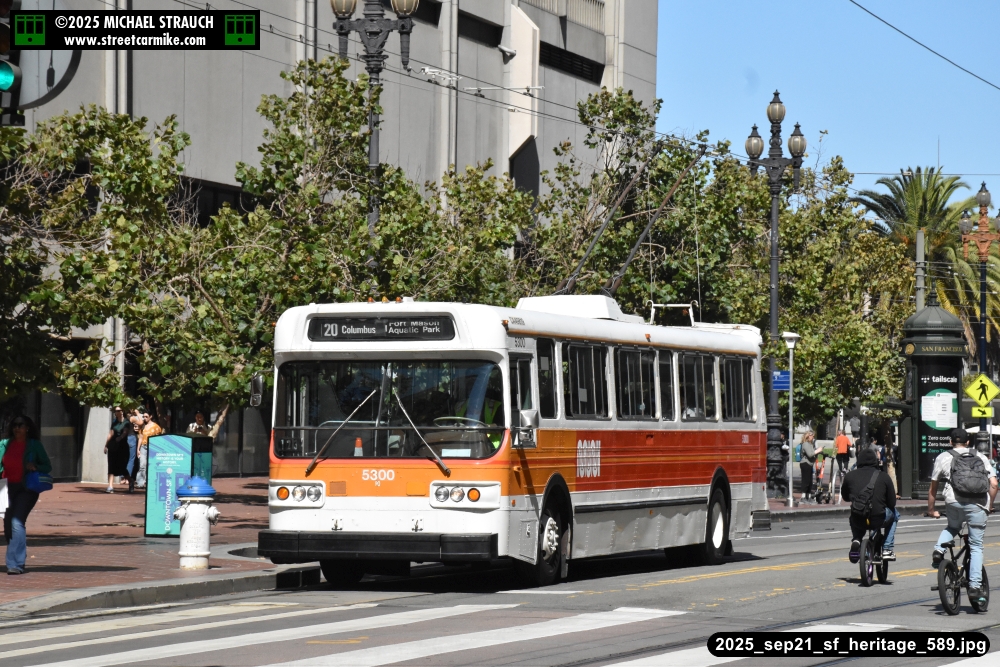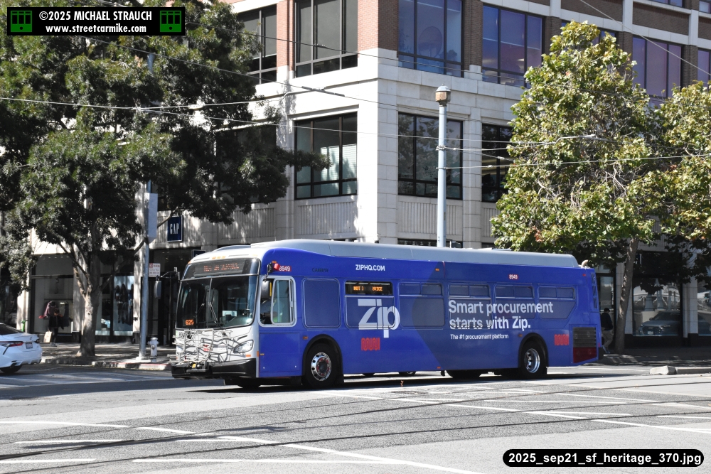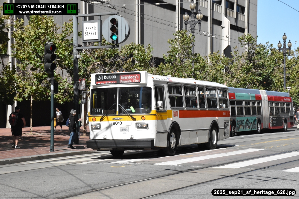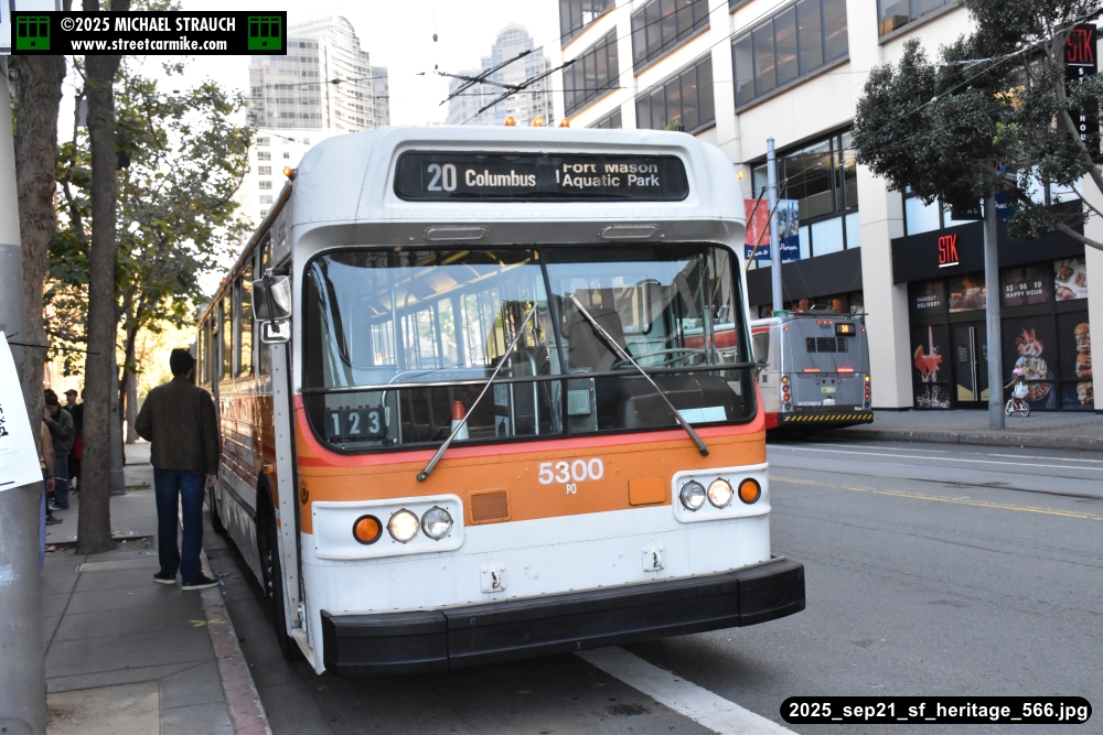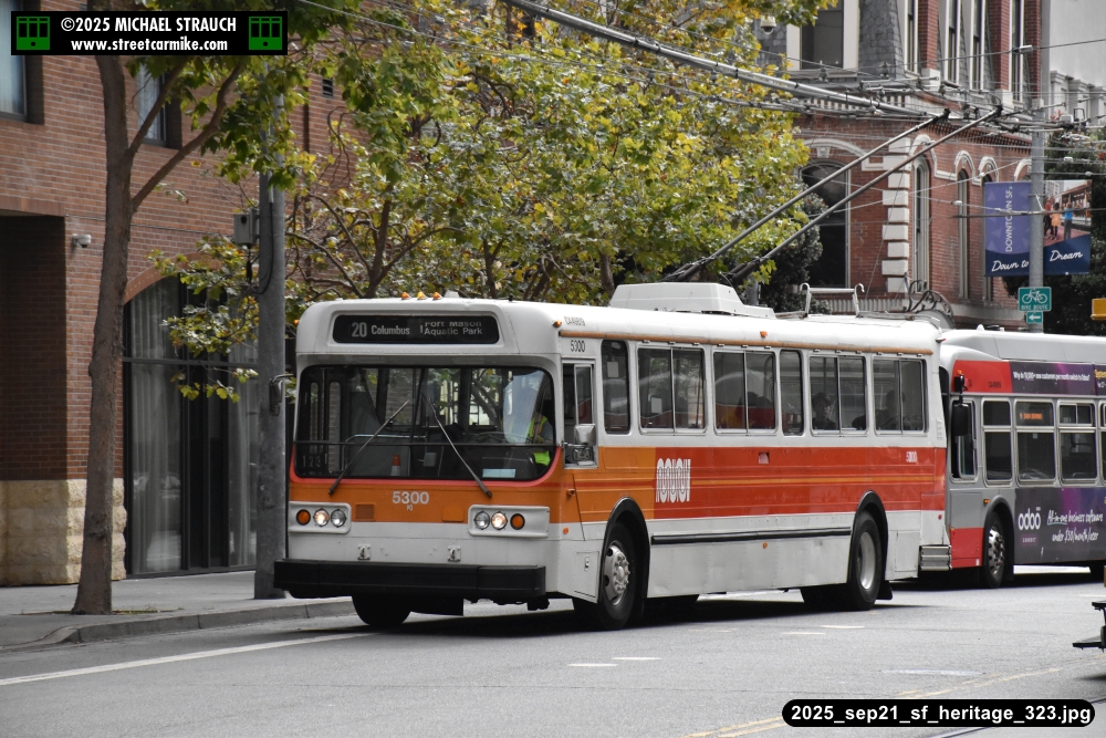 Two rides, on Twin 0163 on the Caltrain route and on Orion 9010 on the Columbus Ave. and North Point