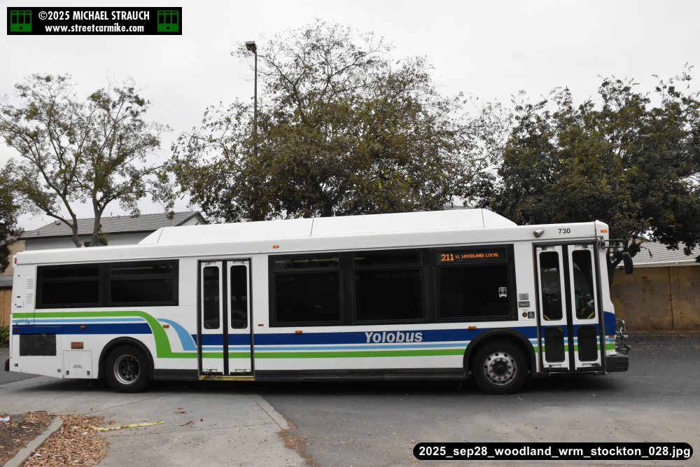 airport to downtown Sacramento. Also at the transit center was Orion 730 on local route 211.