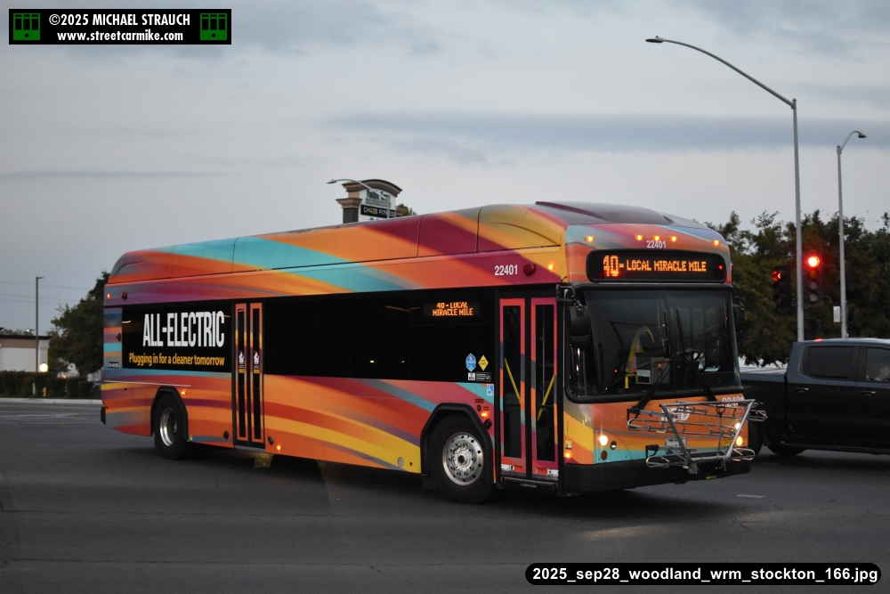 then drove to Pacific Avenue to find two more Gillig electrics, 22401 and 22045, operating the 40 Local on the